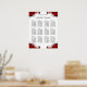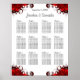 © Sunny Mars Designs- Floral Hibiscus: Red on White Boda Seating Charts for 1Doce Tables - Diseño floral moderno, elegante, elegante, elegante, personalizable de moda, boda gótico, plantilla de tabla de asientos con un color rojo oscuro, rojo oscuro, cromón, burdeos, rubí o hibiscos tropicales marrones con fondo blanco personalizable.