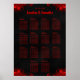 © Sunny Mars Designs - Floral Hibiscus: Red on Chalkboard Boda Seating Charts for Catorce Tables - Elegante, distinguido, moda, moderno, moderno, personalizado, de diseño, boda de pizarra negra gótica con plantilla de tablero de asiento con rojo oscuro, cromón, burdeos, rubí o marrón diseño floral de hibiscos tropicales tropicales contra pizarra o tiza fondo del tablero.