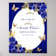Póster Floral Royal Blue Gold Tiara Butterfly Quinceañera