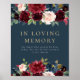 Este es un signo de memoria encantadora que presenta una elegante acuarela rústica burdeos y flores azul marino con una combinación de fuentes simple y atemporal. Es la manera perfecta de honrar a sus seres queridos para una ducha de bebé, una ducha de novia, un boda o cualquier evento que tenga en mente.