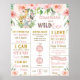 Un toque perfecto para la fiesta del primer cumpleaños de tu pequeña. Este encantador cartel de Estadísticas de Nacimiento y Logros del 1er Cumpleaños con Animales del Jungle, Floral Rosa y Verdor es perfecto para enmarcar y colocar en una mesa de postres/torta y usar como decoración para el cuarto del bebé después. Ideal como accesorio para fotos muy especiales y memorables de cumpleaños. También hace un regalo maravilloso y único.