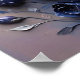 Este caprichoso poster presenta hermosas flores de textura criada en púrpura, azul y gris que se levantan de sus raíces. Terminado en una impresión de arte digital mixta.