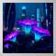 Una fusión de flores de neón radiante y un paisaje urbano futurista, donde formas orgánicas brillan con luz de fibra óptica: una impresión de arte ciberpunk visionario