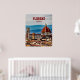 Das Florenz Italien Poster. Die italienische Stadt mit den Sehenswürdigkeiten ist perfekt für den nächsten Sommerurlaub. Im Hintergrund die Berge.