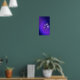 Poster con un diseño de composición digital que cuenta una historia sobre la misteriosa mirada del cielo en la noche. Las flores digitales hechas de líneas nítidas y pétalos geométricos, adornados con luz y transparencias en una construcción de perspectiva natural, están rodeadas de un velo plegado transparente. Los colores de la composición son elegantes y combinan los tonos de la noche cuando el cielo está despejado y las estrellas brillan, con el índigo azul oscuro y el violeta con un toque de morado y magenta. Las flores blancas en medio de la imagen hacen un bonito contraste y aportan la luz necesaria a la composición.