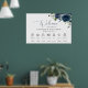 Añada un toque personal a la celebración de su boda con estos artículos fiestas elegantes y memorables. El diseño presenta flores color azul marino y vegetación sobre fondo blanco.