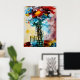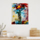 Póster Flores azules rojas y amarillas en un jarrón abstr