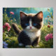 Póster *~* Flores Black Kitty Cat 5:4 Gatito felino