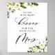 ¿Cuántos besos para la futura señora? Añada este signo botánico a su ducha de novia, con un ramo acuarela florido de flores blancas y follaje. Este floral cartel "Cuántos besos" es perfecto para duchas nupciales de invierno y primavera.