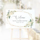 Añada un toque personal a la celebración de la ducha de bebé con estos artículos fiestas de diseño e inolvidables. El diseño está decorado con flores de acuarela blanca, vegetación y marco dorado sobre fondo blanco.