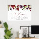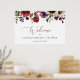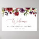 Póster Flores Borgoña, Flores Rosadas, Bienvenida Nupcial