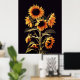 PÓSTER FLORES CON HOJAS VERDES EN NEGRO