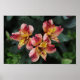 Fotografía de primer plano de las flores rosadas y amarillas de la alstromería cubiertas de gotas de lluvia