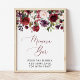 Póster Flores de Borgoña, Flores Rosadas, Boho, Barra de