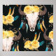 Calavera de búfalo adornada con flores sin fisuras Floral Elegance Meets Skull: Seamless and Strike! Fusión cultural: Calavera de búfalo decorada con flores. calavera, sin costura, vaca, toro, buey, hueso, vintage, rosa, fondo, ilustracion, flor, decoración, floral, animal, pluma, dibujo, etnia, vida silvestre, ritual