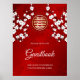Flores florales de cerezo sakura boda blanco rojo mariposas asiática china oriental floral elegante por favor firme nuestro libro de visitas
