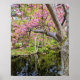 Póster Flores de cerezo rosadas junto al estanque