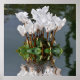 Flores de ciclamen blanco (Planta) en el agua con reflexión, efecto digital