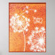 Resumen de arte de flores de dandelion blancas con fondo naranja inspirado en "¡Haz un deseo!"
