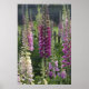 Flores de Foxglove púrpura en un jardín de cabañas de Arena Diseños de Arena Dilo con la colección Flores. Flores violetas en tonos suaves de violeta y rosa.