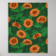 Póster flores de la zinnia naranja, hojas verdes sobre ve