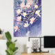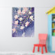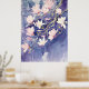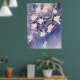 Póster flores de magnolia rosa en fondo morado