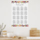 Esta rústica tabla de bodas floridos tiene capacidad para 16 mesas con capacidad para 10 comensales. Las flores de otoño de bonito crean un borde en la parte superior e inferior de la gráfica. Personalizar con los nombres de la pareja en la parte superior, después agregue los nombres de los invitados bodas bajo cada encabezado de la mesa.