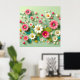 Vibrante e intrincada disposición de flores, elaboradas en un estilo tridimensional. Las flores tienen una variedad de colores, incluyendo tonos de rosa, blanco y amarillo, con hojas verdes exuberantes que proporcionan un fondo. Hay numerosas formas florales, algunas con pétalos apilados y diseños únicos, creando una composición animada y juguetona