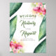 Flores de hibiscos tropicales y hojas de palma en la playa bodas bienvenidas posters de señas