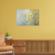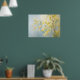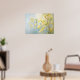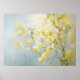 Esta obra de arte impresionista abstracta bonito presenta ramas forsythia amarillas en un suave fondo azul.