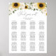 Cuadro de asientos Bodas de flores blancas Sunflower. Rótulo de bienvenida Floral Borgoña Boda