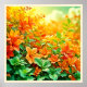 Captura la calidez del verano con esta vibrante huella de arte con naranja iluminado por el sol y flores amarillas y exuberantes hojas verdes en detalle. Perfecto para tu estilo (Este diseño hecho con IA). ¡Haga el pedido hoy y acepte la alegría de ir de compras!