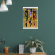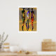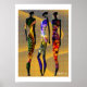 Este poster de Flores del Desierto Africano es una impresionante pieza de arte contemporáneo, con tres elegantes siluetas femeninas decoradas con brillantes motivos geométricos pastel. El arte, situado en un entorno desértico, combina colores llamativos y formas elegantes, creando una estética moderna y llamativa.