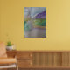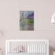 El malva y el azul oxidados hacen de este un bello florecimiento de la acuarela original. La ventana está abierta para que entre la brisa cálida del verano y una jarra de flores silvestres de bonito sobre el ventanal. La ventana da a los púrpura, los campos y los bosques verdes. Elegante y encantador, estas flores en la ventana adornan cualquier habitación de su casa.