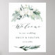 Póster Flores Evergreen y Cotton Elegante Bienvenida Boda