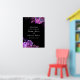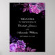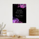 Póster Flores moradas acuarelas. Bienvenida del boda negr