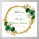 Hermoso poster dulce de dieciséis años con un marco purpurina de imitación verde oscuro y dorado con arreglos florales. Perfecto para una dulce fiesta de 16 años. Las palabras se pueden cambiar para adaptarlas a sus propios detalles o requisitos