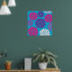 Póster Flores rosa y morada en azul Verde azulado