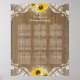 Rústico poster de la tabla de asientos de bodas rurales con girasoles, aliento de bebé, encaje y madera de grano