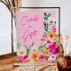 Señal de cartas y regalos con flores de verano elegantes, brillantes y audaces de primavera moderna ilustracion con flor silvestre de gran tamaño y guión de broche signo de ducha de novia con una moderna tipografía de caligrafía con flores de neón rosa brillante, naranja, verde y amarillo en rosa pastel retro
