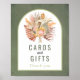 Hojas de palma secas tropicales, pasto pampas y flores de protea arco verde tarjetas botánicas y regalos poster boda. Este diseño de boda bonito presenta un marco de arco sobre fondo verde manchado. En el marco está tu texto, un ramo de hojas de palma secas, flores de protea y pasto de pampas.
