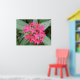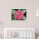 Este hermoso poster cuenta con una detallada fotografía de un grupo de hermosas flores tropicales rosas brillantes, rodeadas de hojas verdes oscuras. Estas flores de bonito forman un círculo en el medio. La foto fue tomada usando macrofotografía para un resultado detallado.