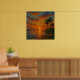 A radiant homage to the tropical twilight, Floridian Sunset immerses the viewer in a moment of stillness and awe. The sun, a molten orb of gold and amber, sinks toward the horizon, casting shimmering reflections across tranquil waters. Billowing clouds—painted in fiery oranges, deep reds, and hints of cobalt—stretch across the sky, echoing the drama of the day’s final light. Silhouetted palm trees stand sentinel on the shoreline, their fronds swaying gently as birds glide overhead, adding motion to the serenity.