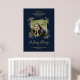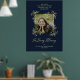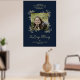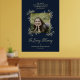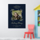 Póster conmemorativo de boda de letra a mano con florituras en azul marino.