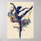Póster Fluid Ink Ballerina – Blue and Gold Abstract Dance