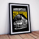 Placed on a deep black background, the design transforms into a dramatic, high-contrast tribute. The white etchings of the locomotive seem to emerge from the darkness, creating a powerful sense of depth and motion. This "noir" aesthetic captures the industrial grit and romanticism of the steam age, making the yellow "Flying Scotsman" text glow with increased intensity. It is a bold choice for those who prefer a more sophisticated or edgy look for their collectibles, perfectly capturing the "heavy metal" spirit of this 97-ton engineering marvel.