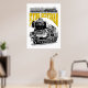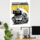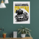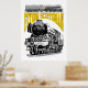 Set against a crisp white background, this design takes on a refined, archival quality. The stark contrast highlights the intricate line work of the locomotive illustration, emphasizing the mechanical details of the boiler, driving wheels, and iconic smoke box. This clean aesthetic is ideal for modern interiors or minimalist gift collections, giving the vintage subject a fresh and timeless appeal. The bold yellow typography provides a vibrant pop of color that stands out sharply, making the legendary name as much a focal point as the engine itself.