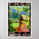Poster de Viajes de Vintage para viajes motivadores de Ferrocarriles de Estados Federados de Malaya Colonial Británica, hoy Malasia