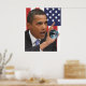 Aceite de presidente Obama pintado con la bandera de los E.E.U.U. y el globo/la tierra en su mano.