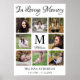 Honre a su ser querido con un cartel fúnebre de colaje de fotos conmemorativo personalizado en un diseño blanco y negro. Este letrero conmemorativo de inicial y nombre monogramado único es el regalo perfecto para usted, familiares o amigos para honrar a sus seres queridos.